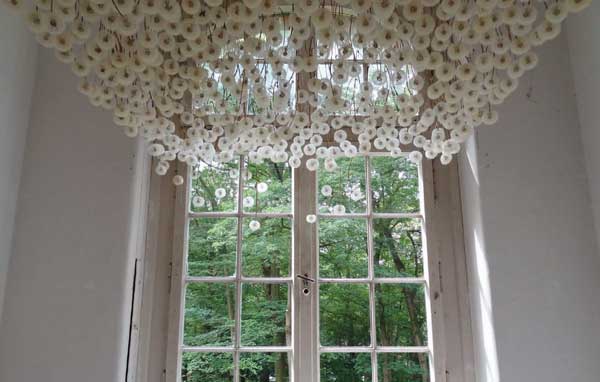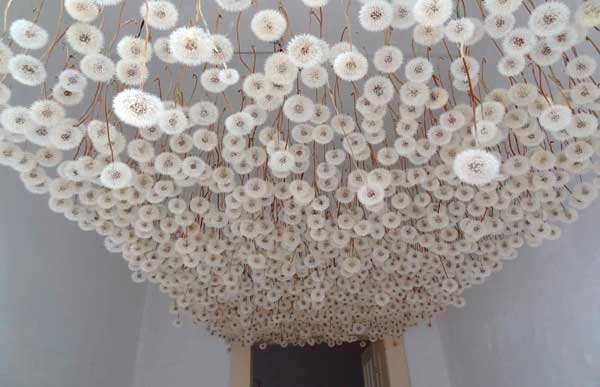 蒲公英飛翔的畫面,光用聽的就覺得來詩情畫意,忍不住想帶回家慢慢欣賞,德國藝術家Regine Ramseier在2011年ArToll Summer Lab展覽中,就準備了一間浪漫的蒲公英房間,兩千朵蒲公英倒掛在天花板上,讓你想看多久,就看多久。