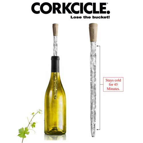 登愣~這個名叫「冰柱紅酒塞(Corkcicle)」的實用設計,如同其名看起來就像是根鐘乳石冰柱,特殊的材質設計,只要將其放入冰箱內兩個小時,再插入你想要冰鎮的紅酒瓶內,就可以維持與冰箱溫度45分鐘的時間,而且溫度不會隨著時間遞減而影響口感,讓你一頓大餐、一瓶好酒,重頭到尾都是好美味!