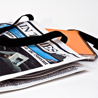 最後補充跟紙好像沒關係又好像有關係的另類包包,「你有雨傘、我有報紙」,這款包包的最終目的大概就是給懶得帶雨傘的人可以行遮雨之實吧!這款由KOAN+設計的包包兼雨傘定價是1350台幣,不過換個角度想,至少家裡有養貓或是狗狗的時候,包包被尿濕了裡面至少很清爽呢!