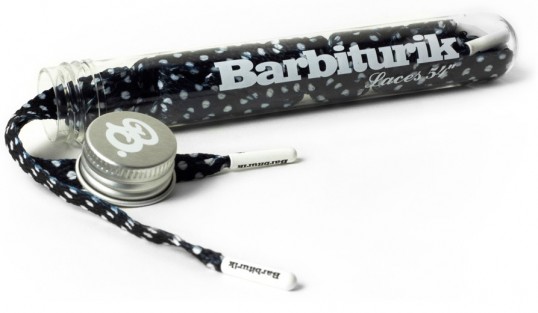 這猛一看完全看不出來是什麼玩意兒的試管們,不是醫院裡面看到的驗血器材,也不是夜店裡面喝兩管就醉的太空漫步,這是由Rémy Hernandez所創立的滑板品牌Barbiturik設計的鞋帶包裝,不同以往鞋帶乏味的設計,試管的包裝讓人忍不住直呼好可愛阿!(同時拿出錢包…)