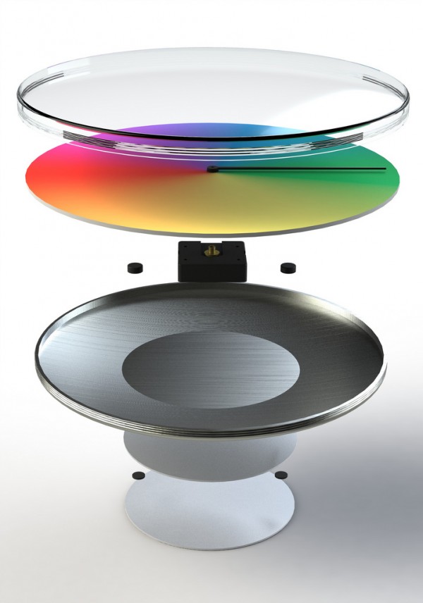 在紐約的Scott Thrift則用一種新的概念去詮釋時間,時間不在是用數字去評斷,而是用身體的感覺,空氣的溫度,四季的變化區分,時鐘表面有著飽和魔幻的漸層色彩,春天的百花齊放綠草如茵就用綠色表示,夏天的炙熱豔陽則是用黃色代表,秋天最給人直接印象的楓葉所以用紅色表示,最後冬天充滿著雪的意象所以用灰色,而顏色和顏色之間又有著相融的中間色,也代表這種曖昧的季節過度提醒你要開始帶衛生紙出門啦!