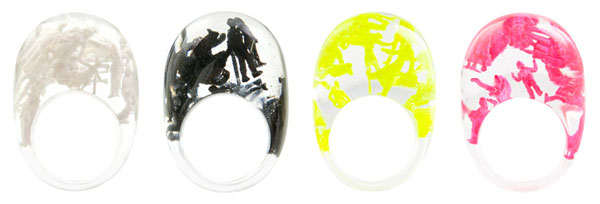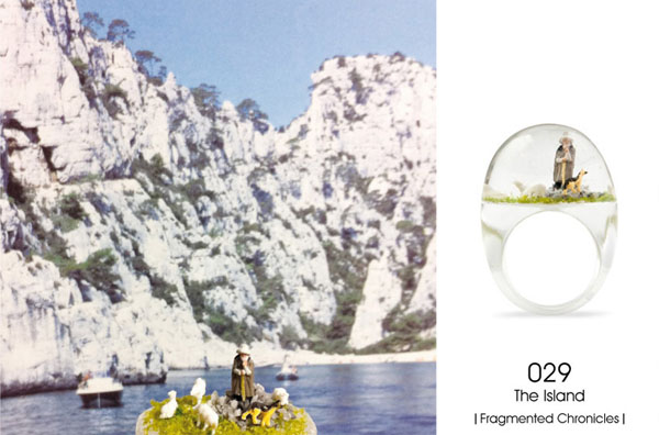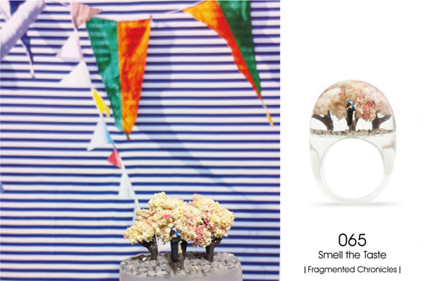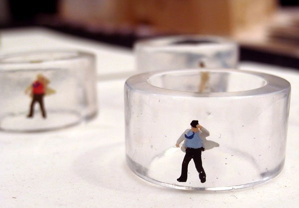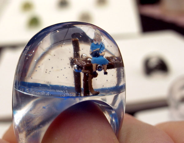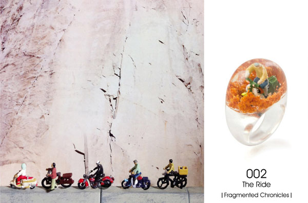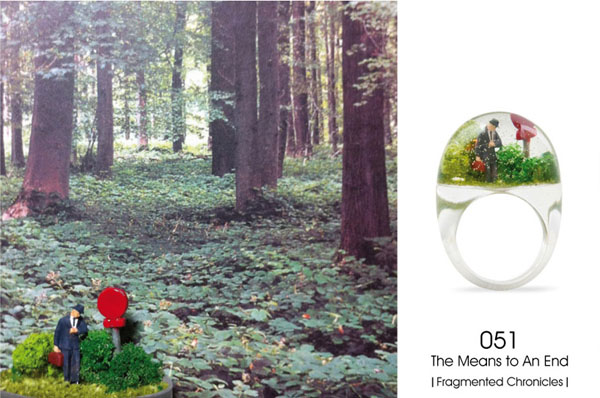 香港的設計二人組在2011年的東京設計師週中展出這一系列的戒指,總共有100款,在每個戒指中都有自己的故事和不同的場景與小人偶角色,就像是凍結了某些重要時刻的回憶ㄧ樣,讓你在佩帶戒指的時候,定睛看著戒指裡面就好像自己也投入到設計師所創作的場景故事中。(如果有五個人佩帶也許可以合體呼喚出地球超人吧。)