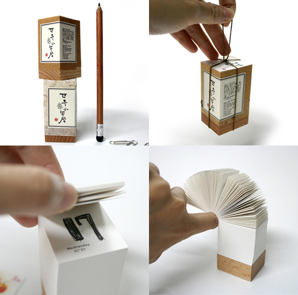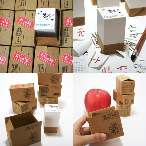 2008年,東方小年曆告訴你東方字體的美,每一頁都用正統書法字體寫明日期,每天每頁都是一個設計,紙張使用水紋紙增加東方質感,一共有384張,一口 氣就擁有384張設計作品在你的手上。最酷的是外包裝使用世界級迷你小紙箱,正面反面上面下面都印完整傳統水果箱一定要有的文案,高磅數小紙箱就連最小細 節處也打圓角,正說明設計師對設計的堅持只不過是想要把最精緻的東西給你。