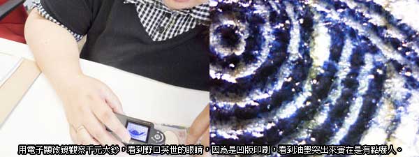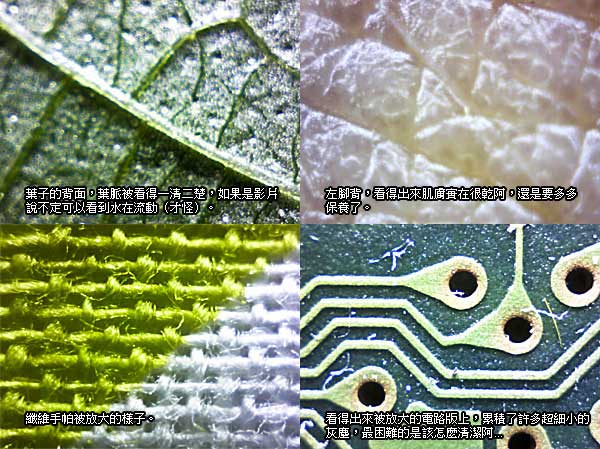 小時候上的物理化學課程,第一次使用顯微鏡就是為了要看草履蟲爬來爬去的,睜隻眼閉隻眼,左眼酸了換右眼,而這個攜帶用的電子顯微鏡,最優越的地方就是電 子螢幕,用高性能鏡頭把你要看得小東西照得又精準又清楚,不管是印刷物件要分辨到底是網版印刷還是凹版印刷,還是像國家寶藏一樣找出鈔票裡面隱藏的祕密, 都變得簡單容易上手!(尼可拉思凱吉已經購入五台啦!快點撥打電話!)