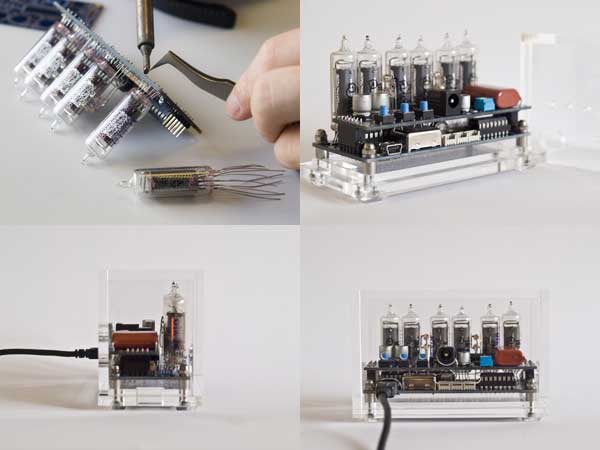 這款非常炫的真空管時鐘,叫做數字真空管(Nixie Tube),本來已經停產多時,但是因為發光源穩定的關係最近又用於世界變動率關測