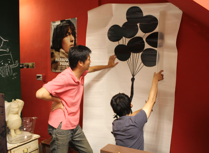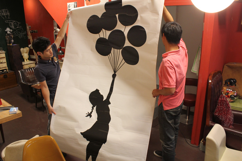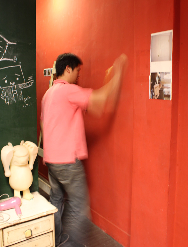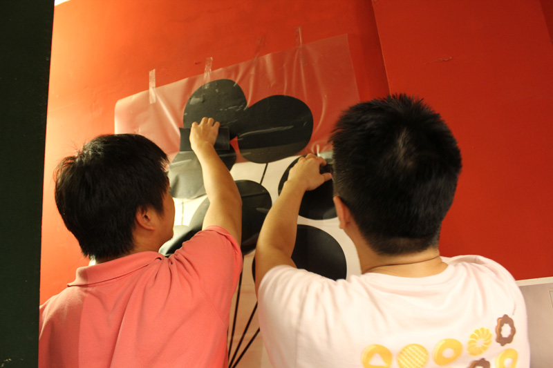 壁貼上牆之後,剩下的工作就簡單多了,只要慢慢的把保護膜除去就好。但是因為保護膜同樣具有黏性,所以還是一吋一吋的撕,順便再補強一下壁貼的服貼度。