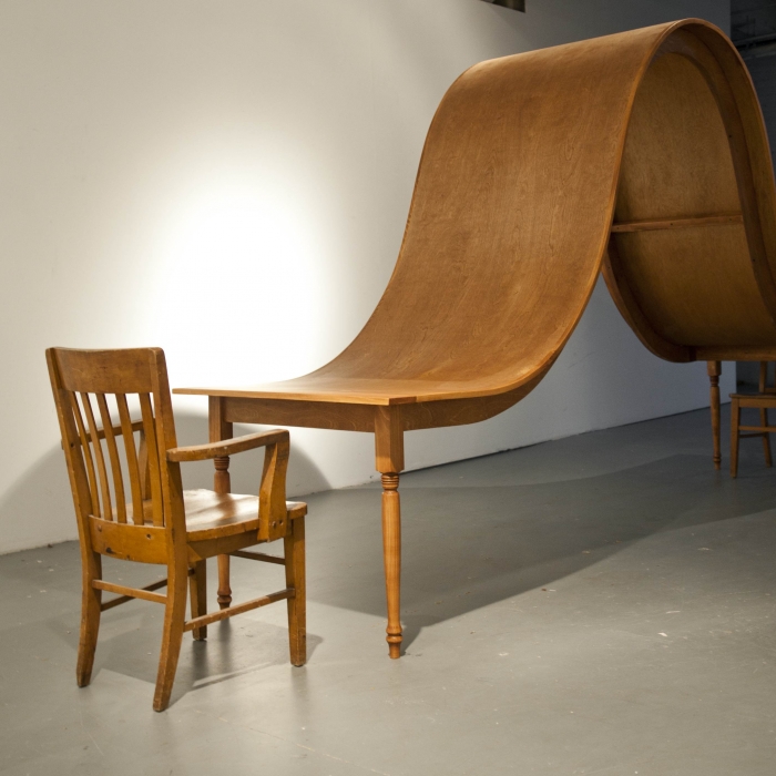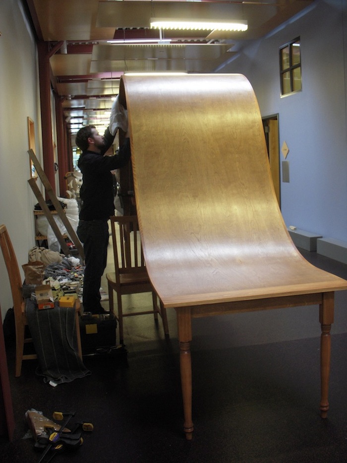 這張吃飯看不到對方的餐桌,正是設計師 Michael Beitz考量到大家在用餐時間,不希望看到不喜歡的人以及不想要進行談話,進而設計出來這一張完美餐桌。因為有十多年的家具製造商的工作經驗,影響了Michael Beitz 許多的設計概念,開始用家具本身的設計來討論、詮釋人們之間的關係。