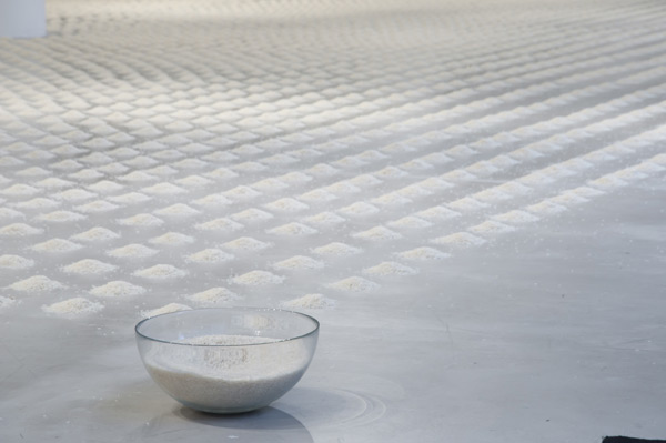 從小我們便被教育「粒粒皆辛苦」,一粒米飯都不能浪費,看來現在德國也有人對這樣老祖先的智慧也有所領悟。來自德國的藝術家Wolfgang Laib在芝加哥藝術學院所展出的最新作品或許會讓以米食為主食的我們感到興趣。Wolfgang Laib在這些簡單、有機,同時也是人類賴以生存的物質中找到靈性。他總共用了超過三萬小堆的米加上七堆花粉創造出他生平中最大的裝置藝術之一,並將之命名為「Unlimited Ocean」。