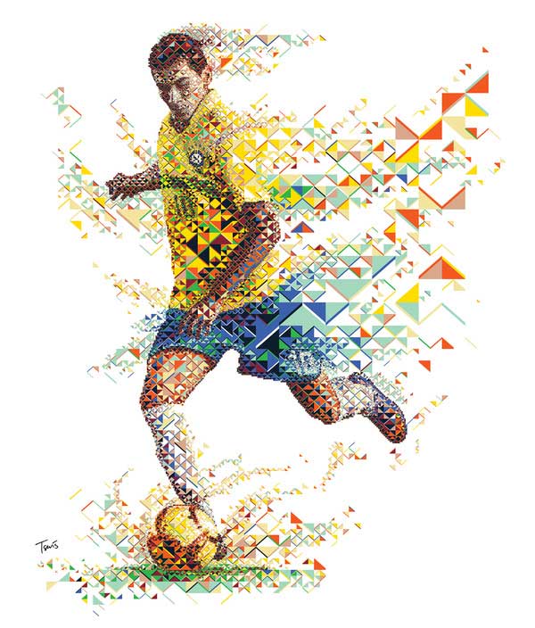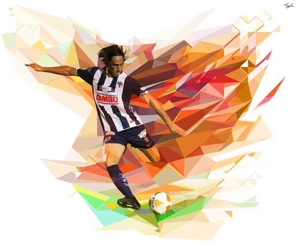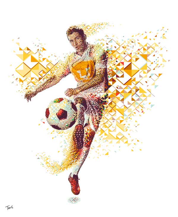 墨西哥聯賽Pumas Unam隊長Israel Castro的表現也不惶多讓,Tsevis總共創作了十個版本,最後才選定以金色的光芒襯托Israel起腳射門的那一剎那。