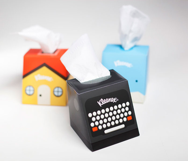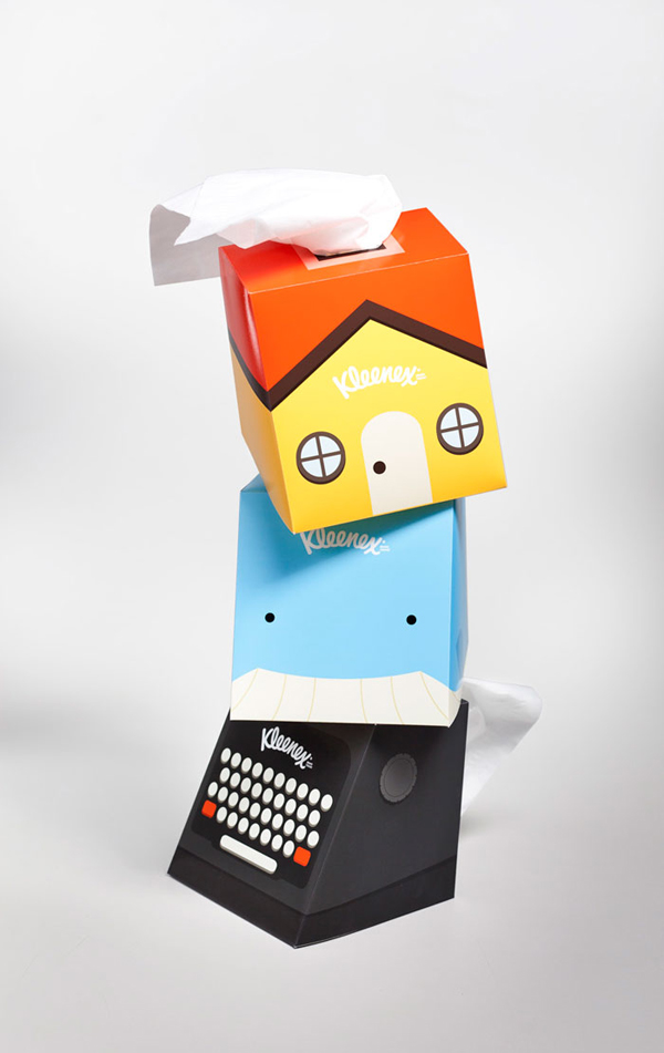 衛生紙一直都是大家解放時候的好朋友(不管是流鼻涕,大哭還是__的時候...),面紙盒的設計也算跟得上潮流,從有印象開始,從每年生肖的不同一直到吉祥物小拉不拉多出現,擺在桌上的面紙也會因為使用者習慣不同而穿上不同風格的面紙套,亞特蘭大的CHRIS YOON則有更好的主意。
