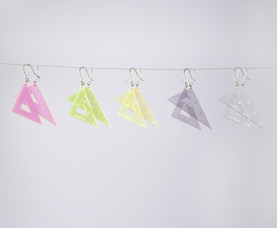 Aquvii把課堂中熟悉的三角組合帶進了大人的世界中,用壓克力材質做出了這些富有玩味的耳環和項鏈,雖然說測量的尺寸不能太長,但是拔下耳環後隨時可以量長度的趣味感也讓這商品增加些許實用性阿!