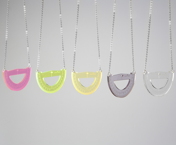 小學的時候書包裡面背的只有書和鉛筆盒,每天要睡覺前都會再三檢查有沒有把尺放進書包裡面,以免隔天上學又被老師罵是個無尺之徒(是說怎麼不管哪裡的老師,不分年紀的都會說這個老梗呢),尤其是數學課,又是三角板又是量角器的,Aquvii則設計了這系列充滿懷舊風情的裝飾品。