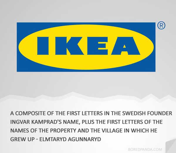 看到Ikea創辦人的名字Ingvar Kamprad,和他小時後成長的地方Elmtaryd Agunnaryd,好像就不難猜出Ikea的由來吼!