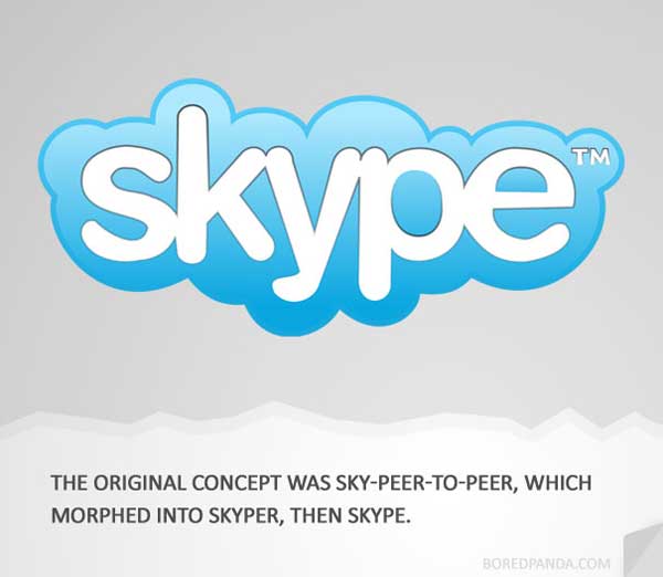 Skype原本的意思其實是Sky-Peer-To-Peer,久而久之,就簡化成Skyper,最後才變成Skype。