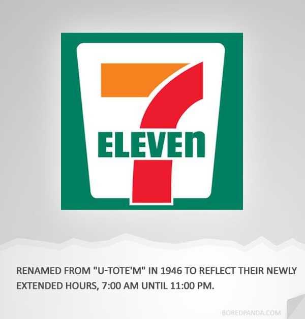 7-11幾乎是全世界便利商店的共通名字,其實最早7-11並不叫7-11,而是叫U-TOTE'M,直到1946年延長營業時間,才改名為7-11。(那......現在24小時營業的話,不是應該再改成7-7嗎?)
