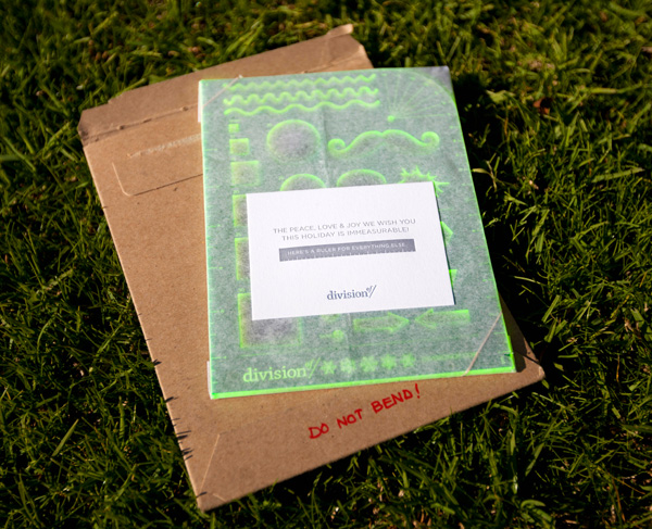 而一個叫做division of的網站則製作了充滿濃厚兒時回憶的圖形版賀卡,這種繪圖版通常以前是給很懶的工業設計師使用,上面從正圓形到橢圓形,一直發展到各式各樣的動物圖案或是飛機等等圖案,而國外的設計師利用了圖形版透明的特性,和雕空的不規則圖形,把賀卡上想要表達的話,利用層次關係展現出來,這是一張充滿「彷彿學術性卻又充滿感情」的賀卡,相信收到的人一定會開心一整年阿!