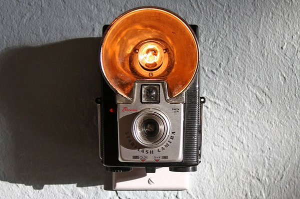 50年代及60年代的美妙復古相機,用的是膠卷底片,洗出來常常會有意想不到的可愛變化,在Flickr上有名叫做Jason Hull的用戶,用了一些塑膠製的老相機,製成獨一無二的小夜燈,為了要降低相機的重量,他將裡面的一些百葉窗等等機械拆除,較輕的重量才不至於破壞插座。