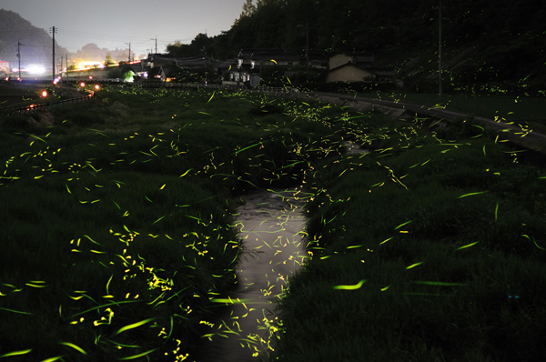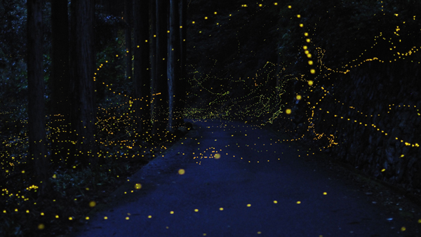2008-2011在日本的Maniwa和Okayama Prefecture這兩個地方,日本攝影師拍攝到許多螢火蟲的照片,但因為螢火蟲飛行的速度相當緩慢,所以使用了長時間曝光的拍攝手法,才有辦法拍出飛行的軌跡和繁星點點的效果。他們選在六月,七月的雨季後,潮濕的空氣是螢火蟲最喜歡的環境,拍出來的效果光只是看照片就讓人淚眼婆娑了阿,這些照片保證是真實的,霓虹燈似的黃色綠色點點交錯,形成了相當漂亮且富麗堂皇的畫面。(我想這位攝影師應該不會願意透露地點在哪裡,以免破壞環境才是呢!)