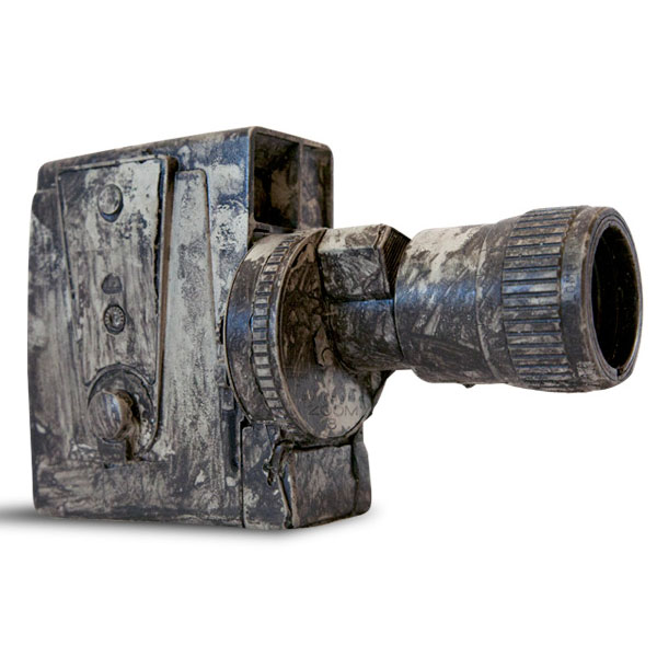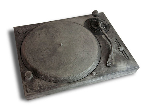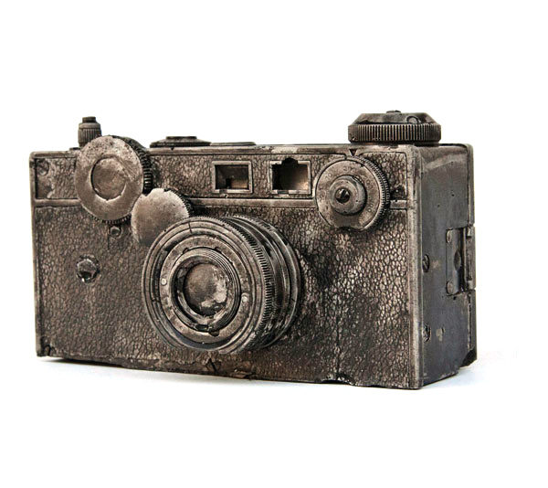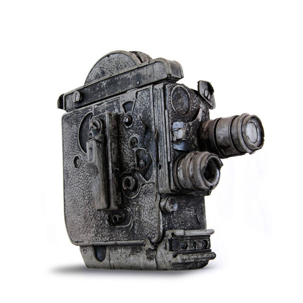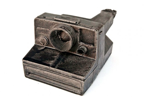 而藝術家Jeff Klarin和Rebecca Johnson創造了一系列不在只是在電影裡或漫畫書裡才會出現的未來化石,刻意製造舊舊的質感和彷彿石頭般的灰色不均勻色彩,就像是剛從土堆裡岩石中挖掘出的化石一樣。從現在已經買不到的雙眼底片相機,電動搖桿,唱盤,一直到現在正火紅的拍立得相機,從裡面不難看到一些早就買不到的科技產品,也許這樣化石的概念也在述說著科技界不斷推成出新的想法吧!