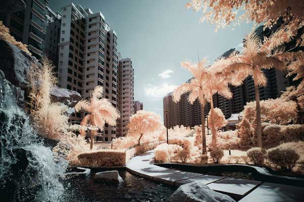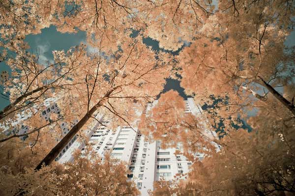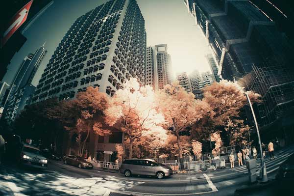 香港的設計師Yiu Yu Hoi透過紅外線攝影將香港打造成一座如夢似幻的城市。他最先於攝影論壇中接觸這樣的攝影方式,並對其效果感到十分驚艷,於是開始學習。Yiu Yu Hoi表示具有發光效果的樹可藉由相機拍出,但他們從相機中看起來是藍色的。然而,只要藉由photoshop將藍色轉為紅色即可讓樹的顏色變得泛紅且自然。這是個相當熱門,同時也很強大的讓紅外線攝影更為色彩分明的技術。