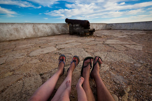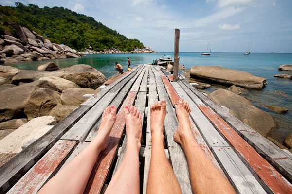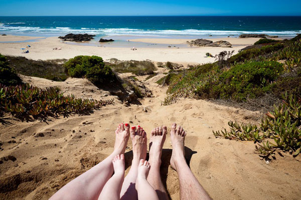 從2005開始,攝影師Tom Robinson每次與家人或朋友出遊,都會拍攝同行夥伴的雙腳合照,第一次拍攝「旅行腳」照是與女友Verity在英國的Brighton海灘的出遊,之後不管是上山還是下海或是住露營車,他們每回都要拍攝腳併腳的合照,有種說不出的私密默契,也有種「雙腳凸歸全世界」的感覺。