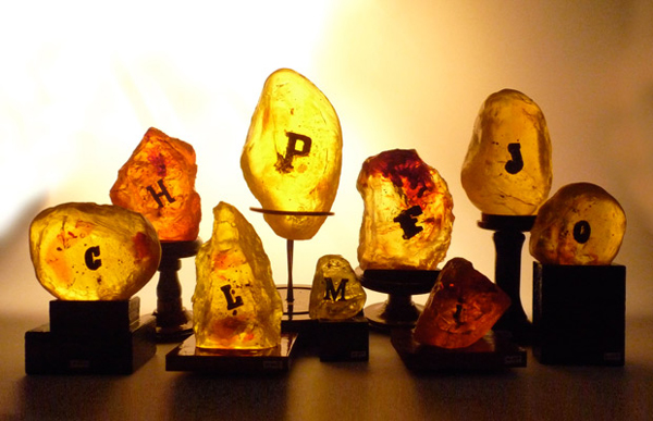 另外像是存在琥珀中的字母,表現了字母像是化石標本一樣,在各方面看起來,字母也的確是非常古老的文化,也許正表達著字母也該像是古老物種一樣保護珍惜著。