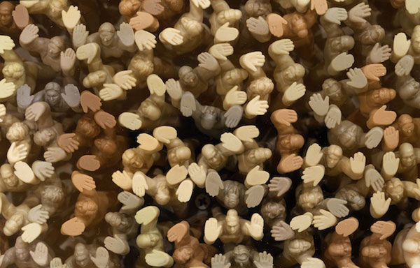 這項名為”Floor”的裝置藝術在二月十一號都會展出於 新加坡泰勒版畫研究院STPI。每位地板下的塑膠玩具人都努力撐著這具有象徵意涵的地板以及其上的重量。在各位大人物的眼中,你覺得它們是在支持著重量還是在抗拒呢?