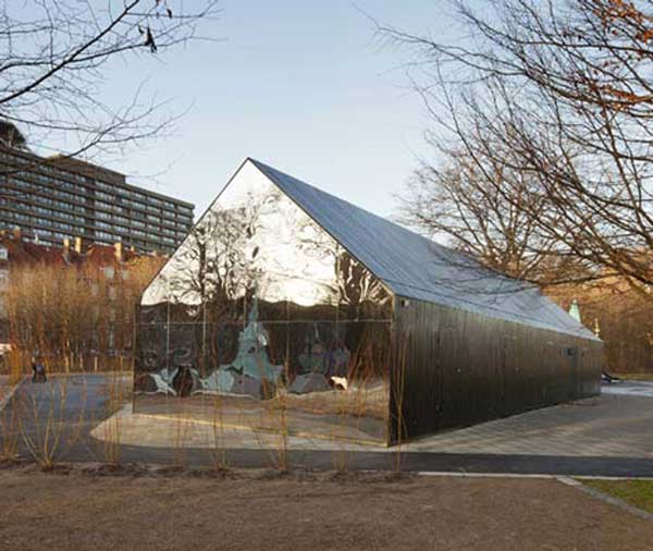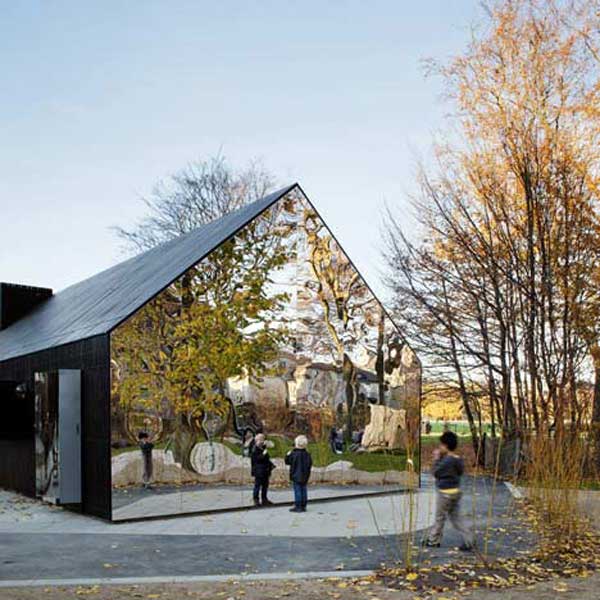 遊樂園裡面的哈哈鏡,一直是小朋友們最喜歡的遊樂設施之一,站在凹鏡和凸靜前,變形的身軀總忍不住讓人發笑,丹麥建築師事務所MLRP為哥本哈根某公園所設計的Mirror House,晚上時看起來就像普通的小木屋,到了白天,隱藏在門窗活動遮板下的凹凸鏡,卻吸引無數小朋友流連忘返、顧影自high!