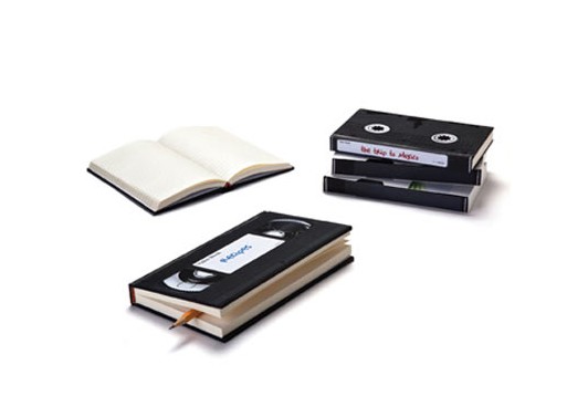 錄音帶筆記本:完全設計給想要回味錄影帶時代的朋友,從以前看錄影帶到長大的人,一定多少會回想起看完錄影帶要把錄影帶放到紅色跑車裡迴帶的記憶吧(為什麼迴帶機都是紅色跑車呢),而從很久以前就絕跡的錄影帶出租店,也都充滿著看卡通的印象(小時候最喜歡租的就是忍者龜和抓鬼特攻隊了),還是很緬懷錄影帶的朋友絕不能錯過這款筆記本阿!一本要價20美金,喜歡的朋友這邊買。