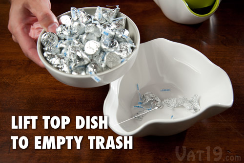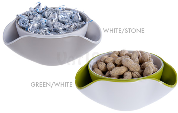 大過年的總是要吃些應景小零嘴,把已經被年菜撐到爆破邊緣的胃再一點點的推向臨界點,不過小點心們最麻煩的一點就是都帶著殼,像是花生瓜子、開心果跟蛤蜊(誰會吃蛤蜊當點心 XD)。這些堅果類的零嘴總是把桌面搞得狼狽不堪,一點也不優雅。面對這樣的困擾,只要有Double Dish這樣聰明的餐具設計就解決啦。