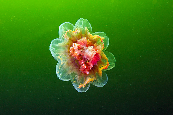 研究無脊椎動物的俄羅斯生物學家Alexander Semenov,在2007年從莫斯科大學動物系畢業後,他帶領著白海生物站的一組潛水隊,深入海底拍攝了一系列的水母攝影,在Alexander Semenov鏡頭下,這些水母晶瑩剔透就像是一件件珍貴的水晶藝術品般充滿美感,令人感嘆原來......涼拌海蜇皮在生前是如此的夢幻美麗啊XD!