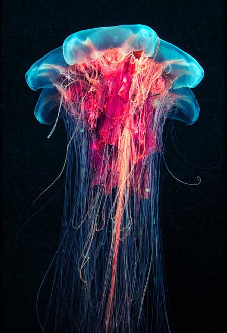 自古就被視為美食珍品的海蜇皮,是不少饕客的最愛,但也許有些朋友不知道其實涼拌海蜇皮的原料就是水母,外型酷似外星生物的水母,在牠透明美麗的外表之下卻有著毒性觸角,向來是潛水人或是衝浪客退避三舍的海底生物,但是在攝影師的鏡頭下,令人退避三舍的水母就彷若來自天堂的生物。