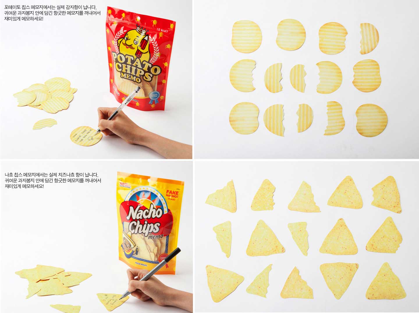 這三種零食便條紙從外觀看起來真的像是一般的零食包裝,裡頭的便條紙每張大小都不一樣,有些缺了一角,有些整個縮水了,真的就像大家打開洋芋片餅乾的情況一樣,餅乾裡不可能每片都是完整的一片!連這些細微的地方都有特別注意到,那~不掏錢買就太對不起自己了啦!