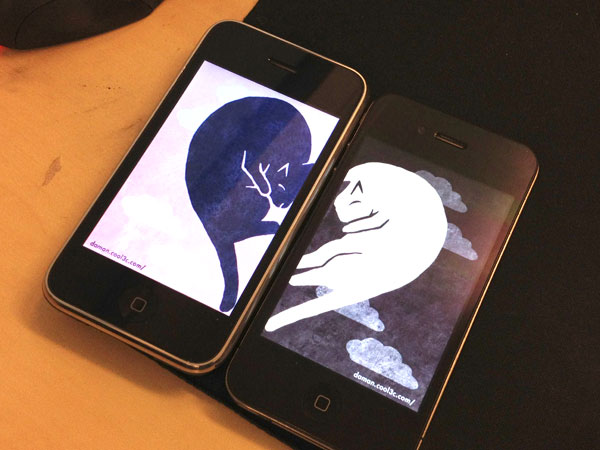 才華洋溢、鬼靈精怪的討喜小姐,超有誠意地一口氣設計了「愛心貓貓」、「雙飛蝴蝶」跟「恩愛瓢蟲」共三款獨家情人節手機桌布,單獨下載時就是張相當童趣的可愛桌布,如果把另一邊圖案送給心愛的另一半時,就可以施展合體技,就可以兩支手機拼成完整的情人節圖案喔!搖身一變成為肉麻系情人手機喔,超級閃光的啊!(戴墨鏡)