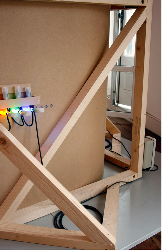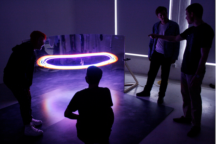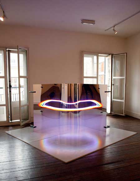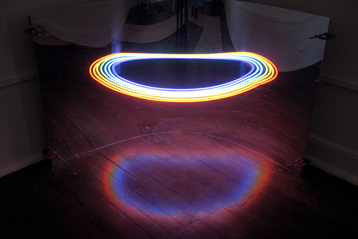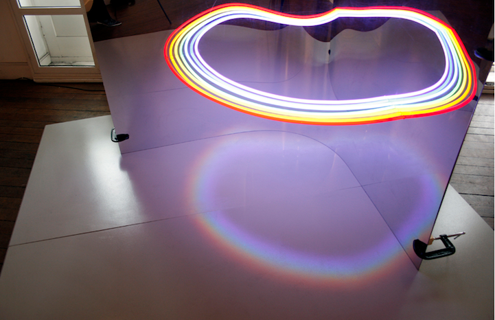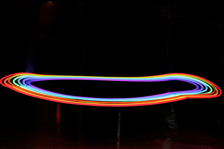 仔細一看,其實這件作品的結構也很簡單,就是兩片木板加上七根霓虹燈管,再加上最重要的「創意」,就成了這件令人猜不透的美麗光圈喔!真的是令人想大喊一聲「MAGIC~!」啊!