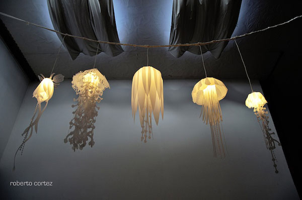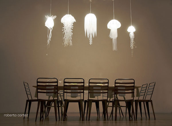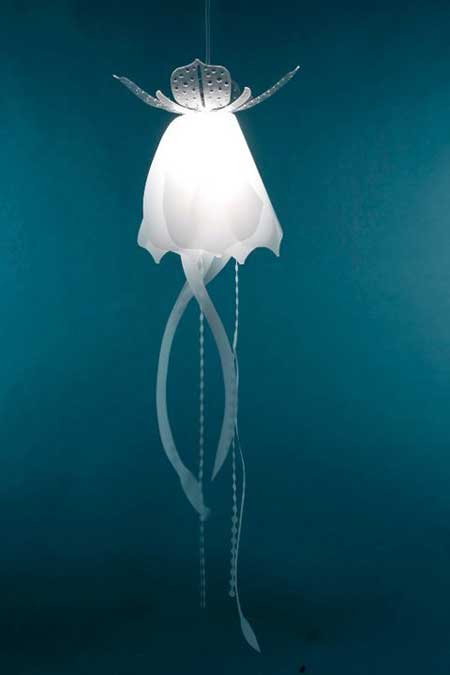 加州設計師Roxy Russell卻從水中精靈水母得到了靈感,設計了一系列水母造型的水母吊燈「The Medusae Collection」, 從外觀看起來就像是一隻隻輕飄飄的水母,優遊在在大海之中。
