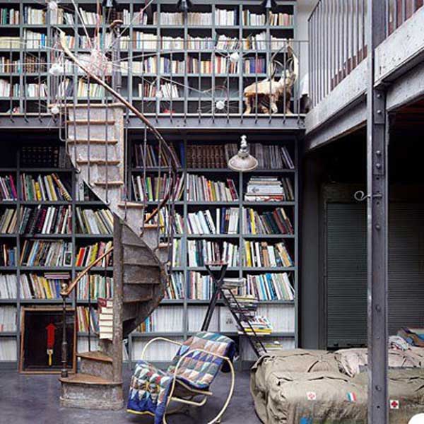 這間家庭圖書館雖然少了一股從木頭書櫃飄散出來的書香味,卻多了一分不拘小節的粗曠風格。(法國巴黎)