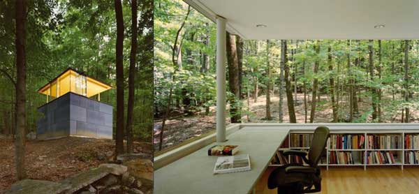 又一間位於林間的圖書館,頗有古人「風聲雨聲讀書聲,聲聲入耳」的意境......(美國,由Peter Gluck and Partners設計)