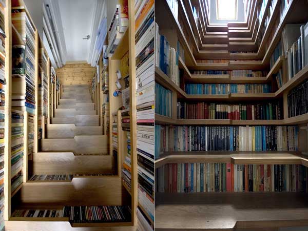 把書藏在階梯間隙的確節省空間,不過爬樓梯時,你可得先克服心中因「踩書」而來的罪惡感才行XD (倫敦,Levitate Architects設計)