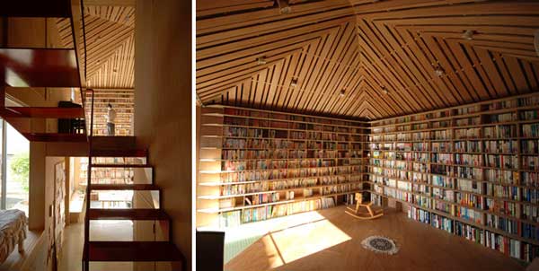 能在比台北擁擠一百倍的東京看到這麼大的家庭圖書館,果然是愛書之人啊!(Atelier Bow-Wow設計)
