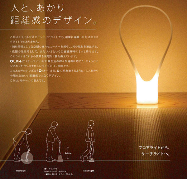 前幾天日本 311 大地震剛滿一週年,同屬地震帶島國的台灣,在過去一年內,市面上的防災居家用品非常熱鬧,甚至不少人已在家準備好急救背包,而燈具方面,有免裝電池的手搖式手電筒,還有一款不得不介紹的設計好物 Twinbird 的 OLight,日本家電品牌很多,擁有 60 年歷史的 Twinbird 則是以生活智慧為品牌特色,這款可充電、可靠電池供電的 OLight 在日本推出後大獲好評,一度還成為熱銷缺貨商品喔。