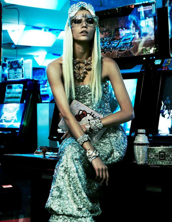 義大利的攝影師Giampaolo Sgura,在開始他的建築職業生涯之前,觸發了對拍攝時尚攝影的激情。他拍攝了Anna Dello Russo在日本四月號Vogue雜誌中設計的「The Girl Who Rocks the Planet」單元,從這些照片中,你不只可以看到巴西名模Aline Weber的高挑完美身材(還有總是不闔上的嘴唇)、閃亮亮價格不斐奇幻洋裝,還有繁忙的東京都市街道風情。