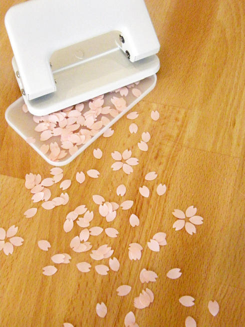 正常打出來的洞口會是圓形的,但是櫻花打洞器卻出現花瓣的樣式,而且切下來的紙屑也是一片片的櫻花瓣喔!