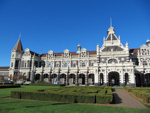 充滿濃濃文藝復興氣息的但尼丁火車站(Dunedin Train Station),白色石灰岩將紅瓦、磚牆裝飾得就像童話故事中的薑餅屋一樣,而車站內的雕花樓梯、彩繪玻璃以及馬賽克地板,更是透露著浪漫氣息。