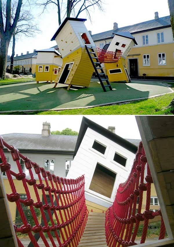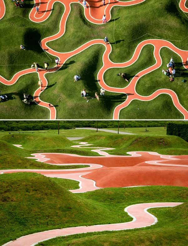 別擔心,這座吊橋只是累到歪著頭睡著了,沒有被地震震到液化啦!(哥本哈根Brumleby遊樂場,由Monstrum設計)