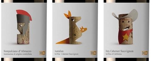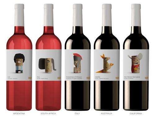 西班牙設計工作室Lavernia & Cienfuegos設計了一系列充滿童趣紅酒標籤設計「Wines of the World」,利用紅酒塞裝扮成無尾熊、袋鼠、羅馬戰士、復活島摩艾石像、印地安人等可愛角色,巧妙點出該瓶紅酒的產地,像是澳洲、義大利跟南非等地,讓 人在品嚐紅酒之餘,還可以看酒標猜猜產地喔,相當具有童趣。