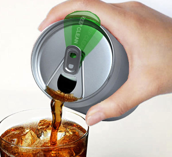 Meixian Su、Fengming Chen和Yujie Chen這三位設計師就發想了一款概念設計,利用低成本的半透明保護,輕鬆防止外面的灰塵或客人髒污的手指沾染上開罐蓋了,不使用吸管,不用特別另外清洗,就算是倒入杯子中,經過鐵罐也不用擔心喝到的是特別加料的飲品,小小的巧思就讓人有大大的方便!
