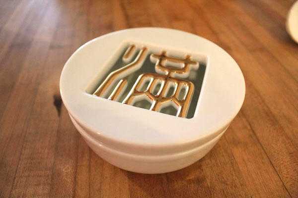 「圓滿」,顧名思義,圓形的造型與中間雕空的「滿」字就像古錢般,符合傳統中式思想的小盆子,從滿的中間投入硬幣,對儲蓄就有了新的感受,從聽到硬幣敲打到瓷器的清脆聲,到硬幣碰硬幣的金屬聲,就這樣自己的錢財越來越滿出來。