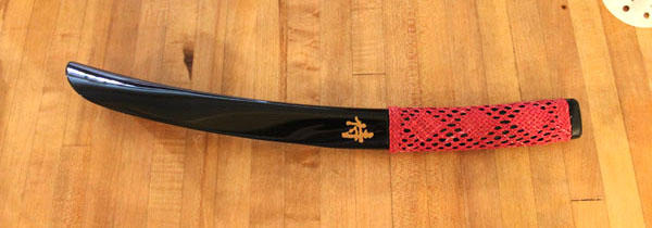 「Samurai」,猛看是一把短短的武士刀,充滿漆器平滑高級質感的小短刃其實是鞋拔,每天早上出門用這款鞋拔穿鞋子,讓你渾身充滿武士道的衝勁去上班,握把上的編織藺草強調手感,而這隻鞋拔長度也適當,穿鞋的時候不需要蹲很低也是使用上非常讚的一點。