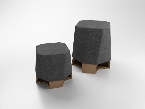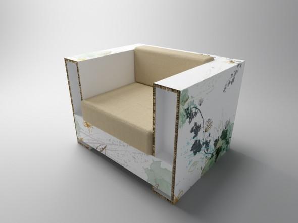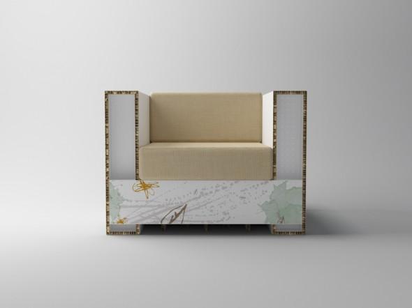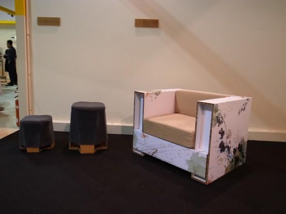Canvas沙發椅,主要結構是瓦楞紙板,靠墊是天然乳膠和內飾再生PET面料。外表上的花紋是可以客制化印刷,更特別的是,不需要任何工具就可以組裝完成。